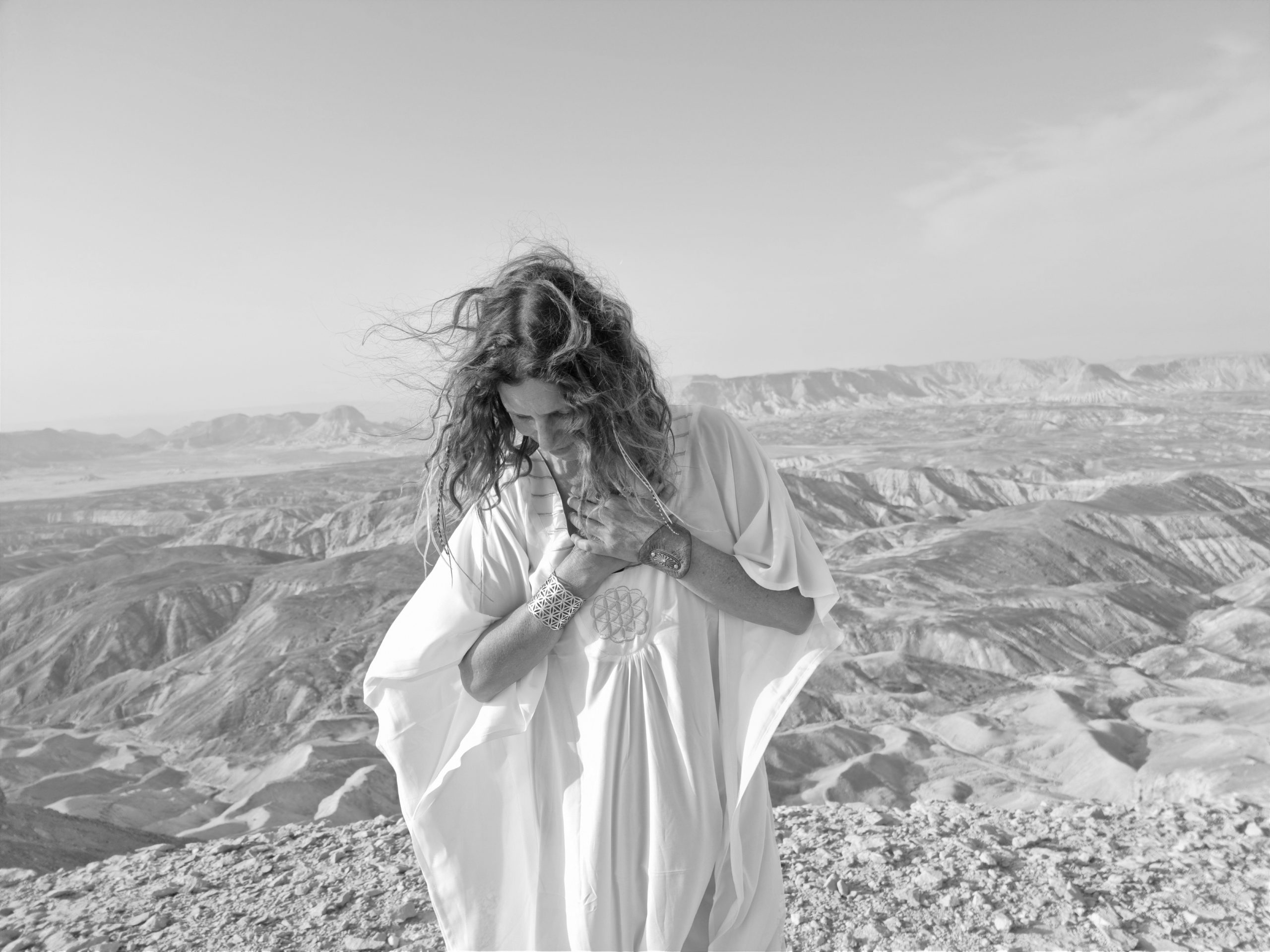 לילה בשחור לבן עם פרח החיים
